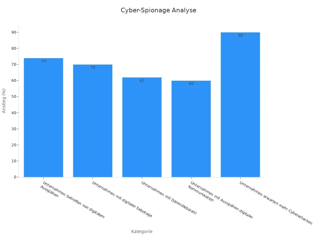 Ein entscheidender Faktor für den Erfolg der Malware war ihre Fähigkeit, sich tief in die Systeme einzugraben. Sie blieb oft jahrelang unentdeckt und ermöglichte so den kontinuierlichen Abfluss von Informationen. Die folgende Grafik zeigt den prozentualen Anstieg verschiedener Kategorien von Cyberangriffen, die die Wirksamkeit solcher Techniken unterstreichen: