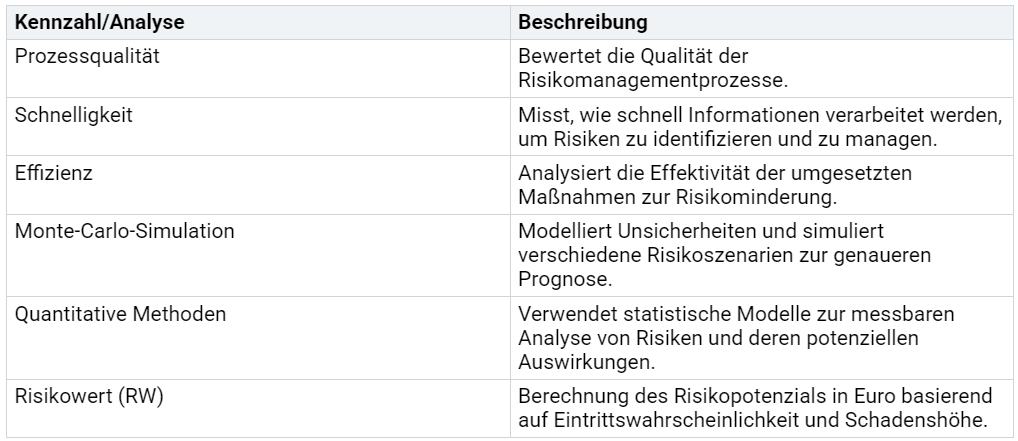 Die Wirksamkeit der Risikomanagement-Ansätze lässt sich anhand folgender Kennzahlen bewerten: