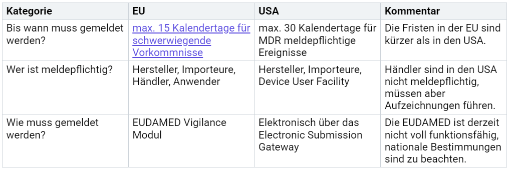 Ein Vergleich der Meldepflichten zeigt die Unterschiede klar auf: