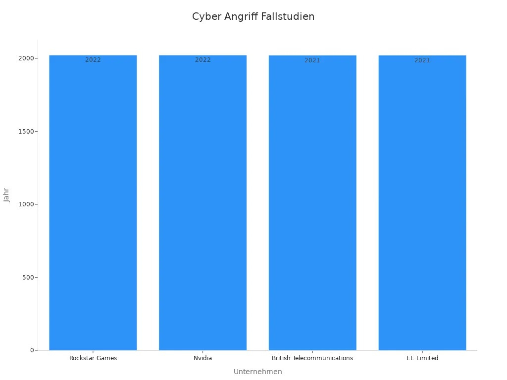 Die Liste der Unternehmen, die von Kurtaj und Lapsus$ gehackt wurden, ist beeindruckend. Du kannst dir vorstellen, wie Unternehmen wie Nvidia und British Telecommunications unter den Angriffen litten. Hier sind einige der bemerkenswerten Vorfälle: