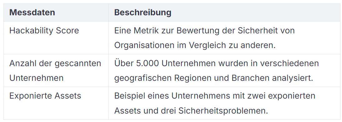 Eine Analyse von über 5.000 Unternehmen zeigt, wie effektiv der Hackability Score bei der Fortschrittsmessung und Planung ist. Die folgende Tabelle fasst wichtige Messdaten zusammen: