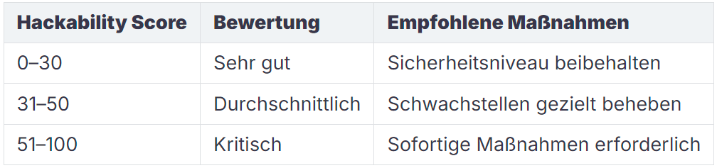 Tipp: Nutze den Hackability Score, um Schwachstellen in diesen Bereichen zu identifizieren und gezielt zu beheben.