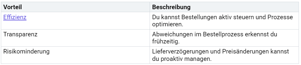 Ein Beispiel für die Vorteile der Automatisierung ist die Einführung von ERP-Systemen (Enterprise Resource Planning). Diese Systeme ermöglichen dir, alle relevanten Daten zentral zu verwalten. Du kannst Bestellungen, Lieferanteninformationen und Rechnungen in einer Plattform bündeln. Das spart nicht nur Zeit, sondern erhöht auch die Transparenz.