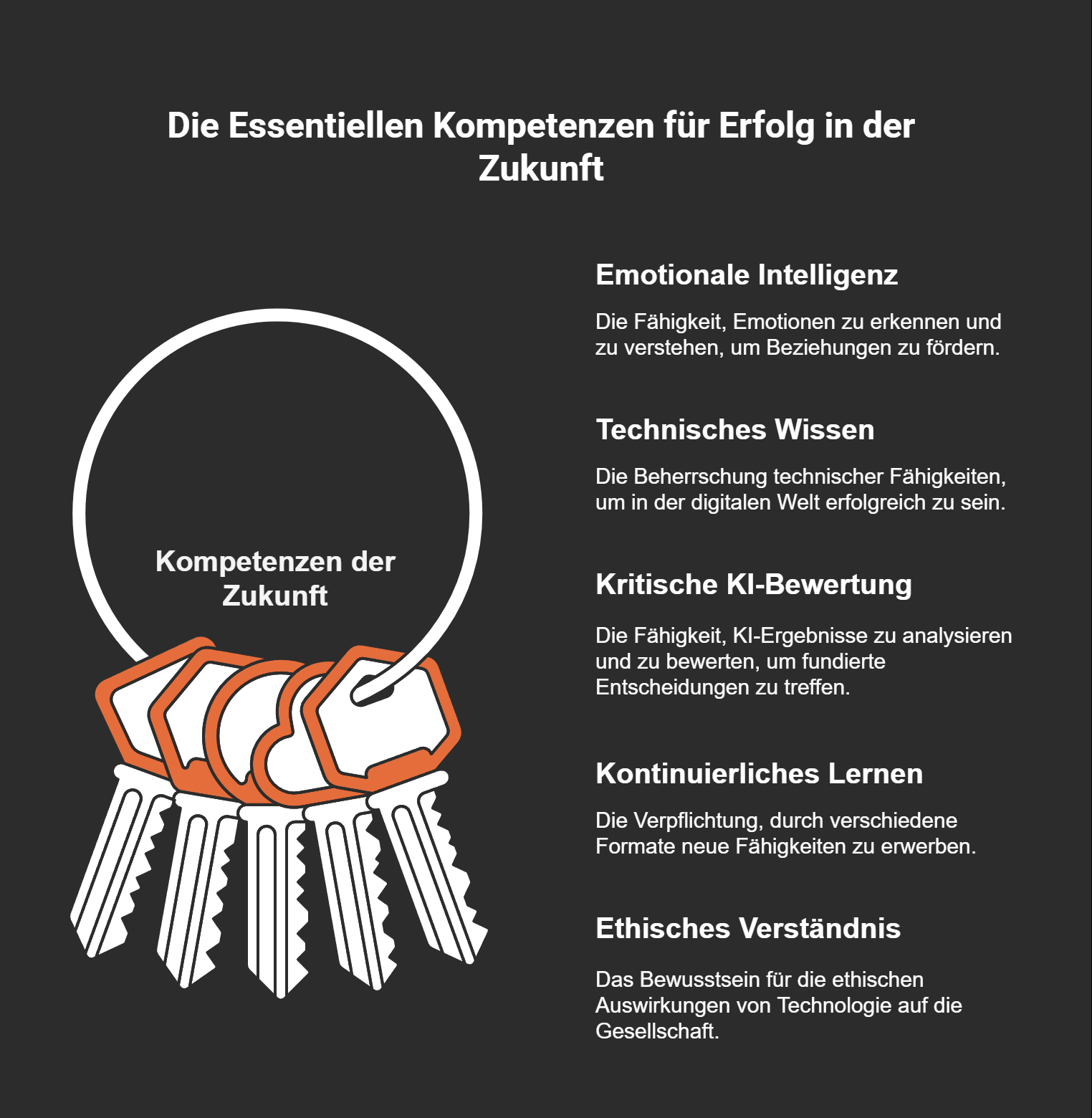 Zusammengefasst: Die Kompetenzen der Zukunft erfordern eine Kombination aus emotionaler Intelligenz, technischem Wissen und einem kritischen, ethischen Verständnis. Bist du bereit für die Herausforderung?