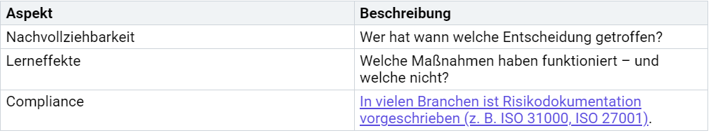 💡 Tipp: Dokumentiere jedes akzeptierte Risiko. So schaffst du Transparenz und kannst Entscheidungen später nachvollziehen.