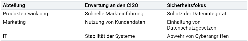 Du hast dich darauf konzentriert, Risiken zu vermeiden, ohne die geschäftlichen Ziele des Unternehmens aktiv zu unterstützen. Das hat die Zusammenarbeit erschwert und die Rolle des CISO auf technische Aufgaben beschränkt.