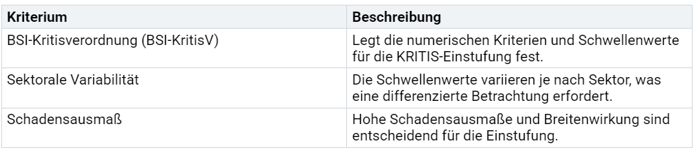 Du kannst dir vorstellen, wie wichtig diese Kriterien sind. Sie helfen dabei, die Ressourcen auf die wirklich kritischen Bereiche zu konzentrieren. Ohne diese klare Abgrenzung wäre es schwierig, die Sicherheit und Resilienz der wichtigsten Infrastrukturen zu gewährleisten.