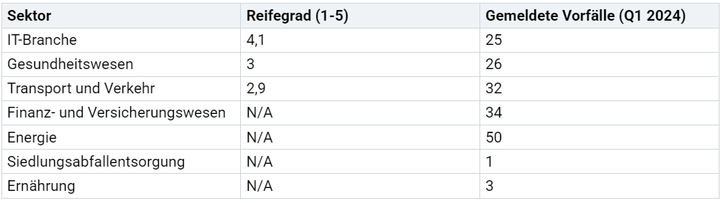 Interessant ist, dass der Reifegrad der Sicherheitsmaßnahmen je nach Sektor stark variiert. Während die IT-Branche einen hohen Reifegrad aufweist, gibt es in anderen Bereichen noch erheblichen Nachholbedarf.