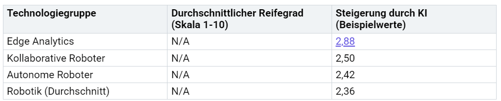 Die folgende Tabelle verdeutlicht, wie KI-Strategien den Reifegrad verschiedener Technologien in der Industrie erhöhen:
