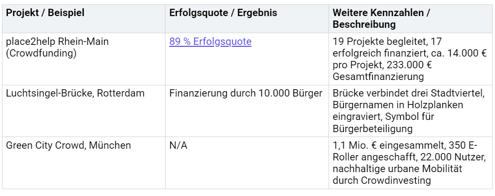 Viele Städte setzen auf neue Formen der Bürgerbeteiligung. Digitale Plattformen und Crowdfunding-Initiativen ermöglichen es, dass Menschen aktiv an der Stadtentwicklung mitwirken. In Barcelona können Bürgerinnen und Bürger über die Plattform „Decidim“ Vorschläge einreichen und über Projekte abstimmen. Die Stadt Rotterdam zeigt mit der Luchtsingel-Brücke, wie gemeinsames Engagement sichtbare Veränderungen schafft. Über 10.000 Bürgerinnen und Bürger finanzierten die Brücke, deren Holzplanken ihre Namen tragen. München nutzt mit „Green City Crowd“ Crowdinvesting, um nachhaltige Mobilität zu fördern. Die folgende Tabelle gibt einen Überblick über erfolgreiche Beteiligungsprojekte: