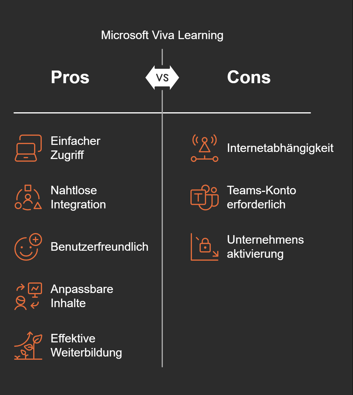 Langfristig stärkt eine gut geschulte Belegschaft die Wettbewerbsfähigkeit deines Unternehmens. Die Kosten für die Lizenzierung werden durch die gesteigerte Effizienz und die verbesserten Ergebnisse mehr als ausgeglichen. Microsoft Viva Learning ist daher eine lohnende Investition für Unternehmen, die eine Kultur des kontinuierlichen Lernens fördern möchten.