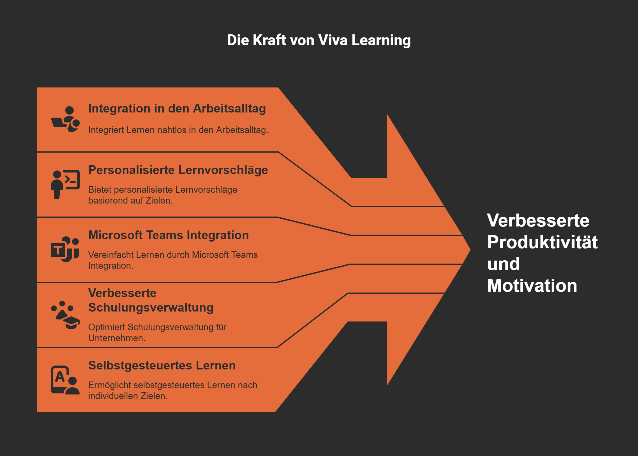 Microsoft Viva Learning verfolgt das Ziel, Lernen zu einem natürlichen Bestandteil deines Arbeitsalltags zu machen. Die Plattform hilft dir, Wissen nahtlos in deine täglichen Aufgaben zu integrieren. Dadurch wird Lernen nicht als zusätzliche Belastung wahrgenommen, sondern als Bereicherung. Unternehmen profitieren von einer zentralisierten Plattform, die den Schulungsprozess optimiert und die Effizienz steigert.