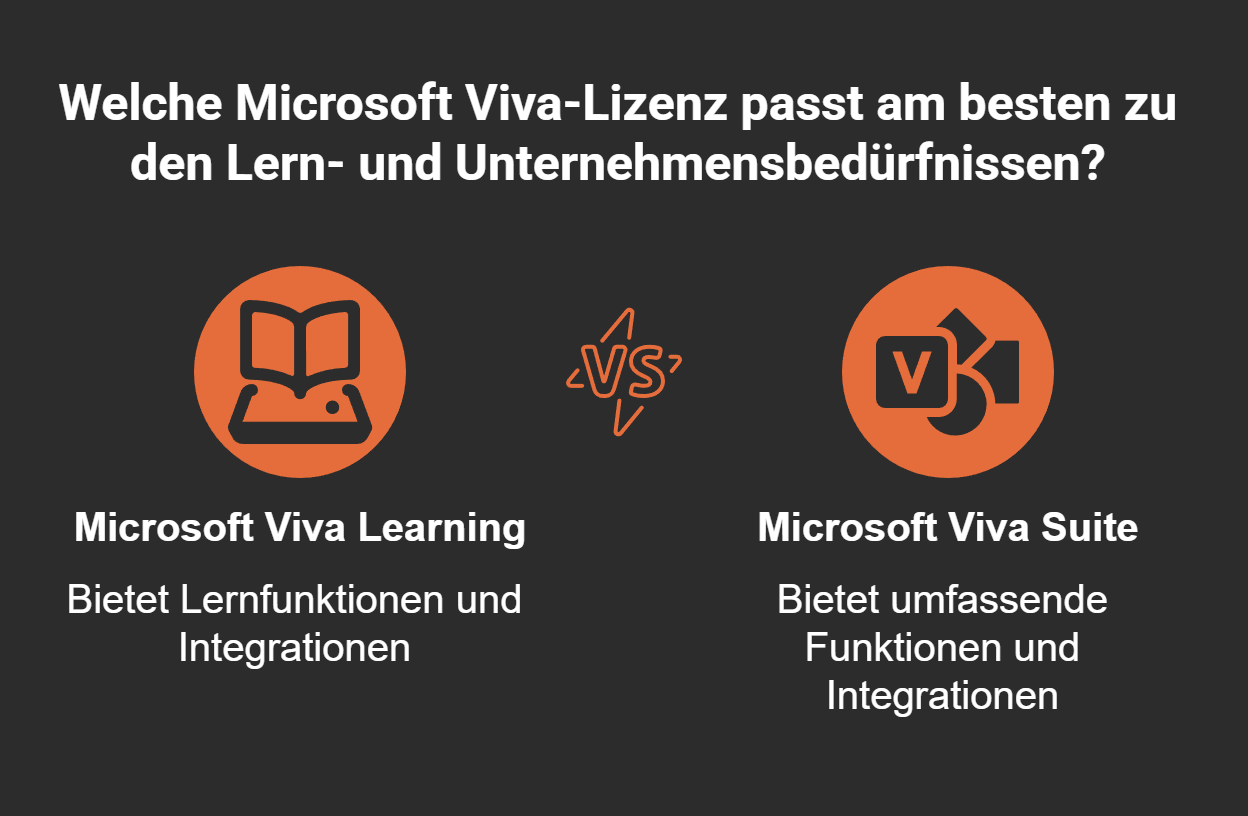Die Wahl der richtigen Lizenz hängt von deinen Anforderungen ab. Wenn du nur Lernfunktionen benötigst, reicht die Viva Learning-Lizenz aus. Für eine umfassendere Lösung empfiehlt sich die Viva Suite.