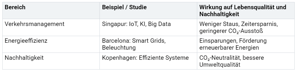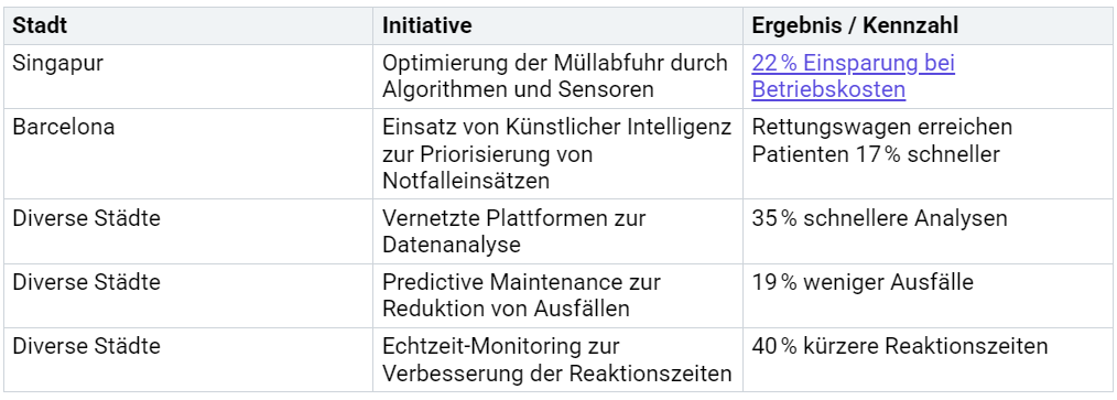 Hinweis: Die Beispiele zeigen, wie Städte durch Digitalisierung und nachhaltige Strategien messbare Verbesserungen erzielen.