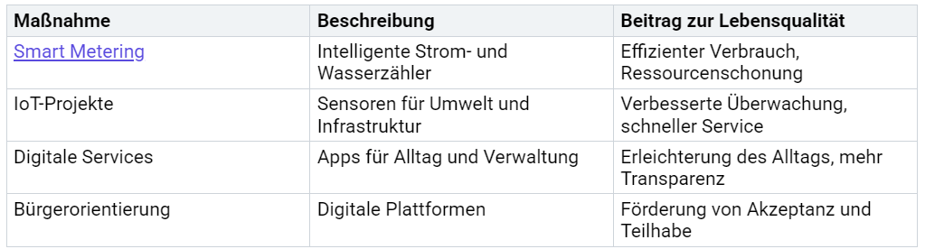 Bürger:innen erleben mehr Komfort und Sicherheit. Digitale Services erleichtern den Alltag. Intelligente Verkehrssteuerung reduziert Staus. Smarte Beleuchtung spart Energie. Apps bieten schnellen Zugang zu Informationen und Dienstleistungen.