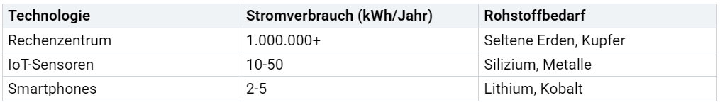 Digitale Technologien verbrauchen viele Ressourcen. Server, Sensoren und Netzwerke benötigen Strom. Die Herstellung von Geräten verschlingt Rohstoffe wie seltene Erden. Der Strombedarf von Rechenzentren steigt. Städte stehen vor einem Zielkonflikt: Sie wollen nachhaltiger werden, doch digitale Lösungen erhöhen oft den Energieverbrauch.