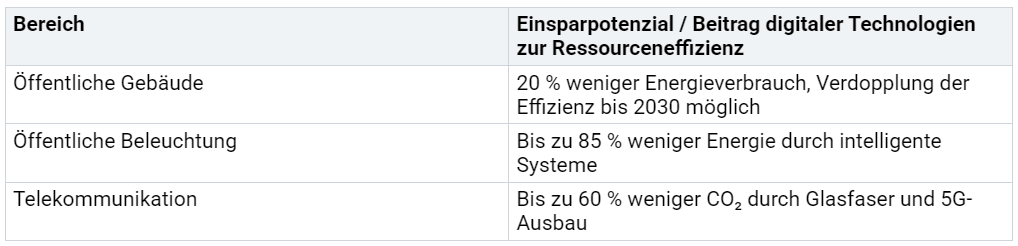 Digitale Technologien helfen, Energie und Ressourcen gezielt einzusetzen. Smarte Netze verteilen Strom effizient und passen sich dem Verbrauch an. Sensoren erkennen, wann Gebäude geheizt oder gekühlt werden müssen. Dadurch sinkt der Energiebedarf. Die Umstellung auf erneuerbare Energien gelingt leichter, wenn digitale Systeme den Energiefluss steuern. Öffentliche Gebäude und Straßenbeleuchtung zeigen, wie groß das Einsparpotenzial ist. Bis 2030 könnten Städte weltweit jährlich bis zu 280 Milliarden US-Dollar durch effizientere Prozesse sparen. Projekte wie „DESIRA“ und „Digi Green“ des Fraunhofer IESE belegen, dass Digitalisierung ökologische, soziale und wirtschaftliche Ziele verbindet. Sie verbessern die Lebensverhältnisse und schützen die Umwelt.