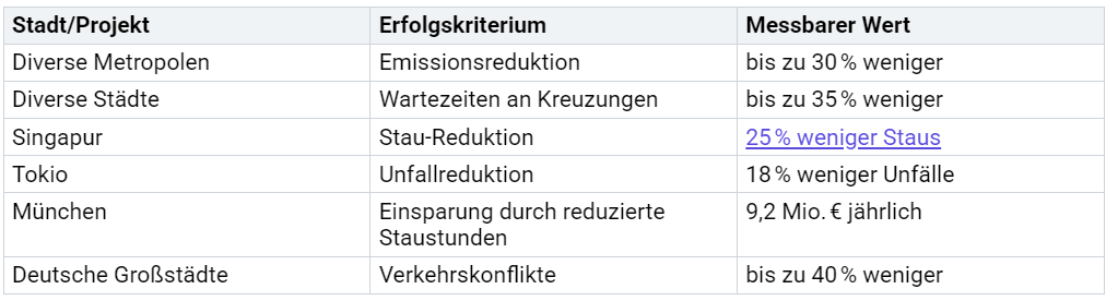 Die folgende Tabelle zeigt, wie verschiedene Städte von KI-basiertem Verkehrsmanagement profitieren: