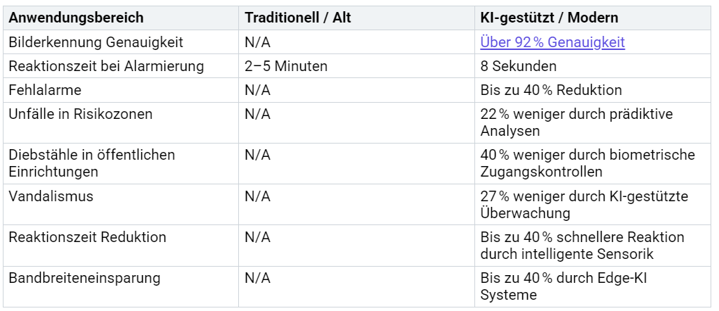 Die folgende Tabelle zeigt die wichtigsten Verbesserungen durch KI-gestützte Sicherheitssysteme: