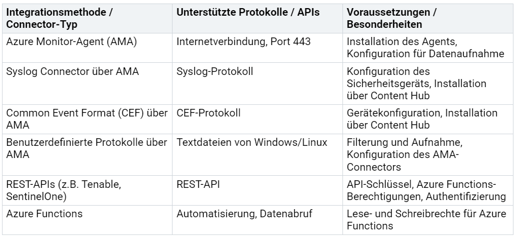 Diese Vielfalt an Integrationsmöglichkeiten sorgt dafür, dass du Microsoft Sentinel auch in komplexen, heterogenen Umgebungen schnell und sicher nutzen kannst.