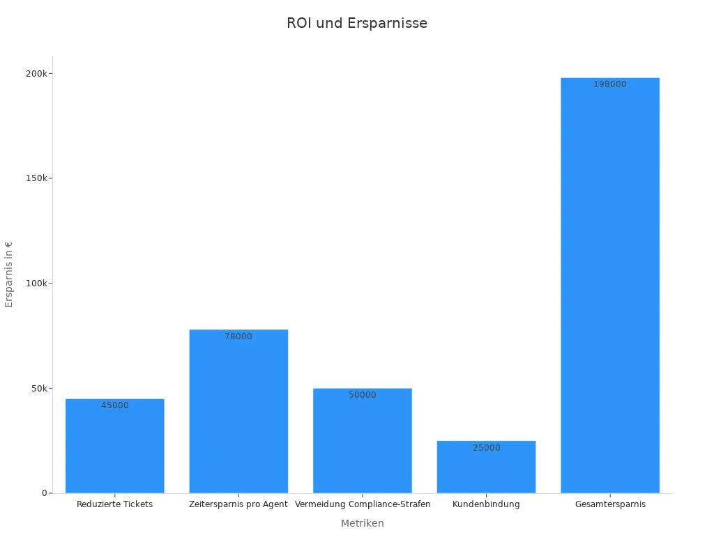 Die Investition in Model Driven Apps und Copilot Agents zahlt sich langfristig aus. Unternehmen berichten von einer Reduktion der Ticketanzahl um 50 %, was zu jährlichen Einsparungen von 45.000 € führt. Auch die Zeitersparnis pro Agent ist beeindruckend: 10 Stunden pro Woche, was jährlich 78.000 € einspart.