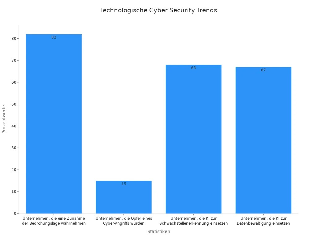 Künstliche Intelligenz (KI) und maschinelles Lernen (ML) revolutionieren die Cyber Security. Diese Technologien ermöglichen eine proaktive Bedrohungserkennung und automatisierte Reaktionen. Unternehmen nutzen KI, um Schwachstellen zu identifizieren und große Datenmengen effizient zu analysieren. Laut einer aktuellen Studie setzen 68 % der Unternehmen KI zur Schwachstellenerkennung ein, während 67 % KI zur Datenbewältigung verwenden.