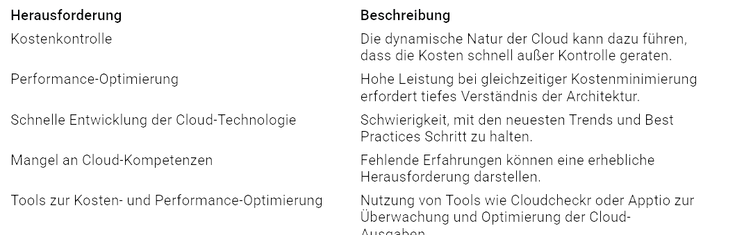 Die dynamische Natur der Cloud-Technologie stellt Unternehmen vor Herausforderungen im Kostenmanagement. Eine unzureichende Kontrolle kann dazu führen, dass Ausgaben schnell außer Kontrolle geraten. Laut einer Analyse sind die häufigsten Probleme:
