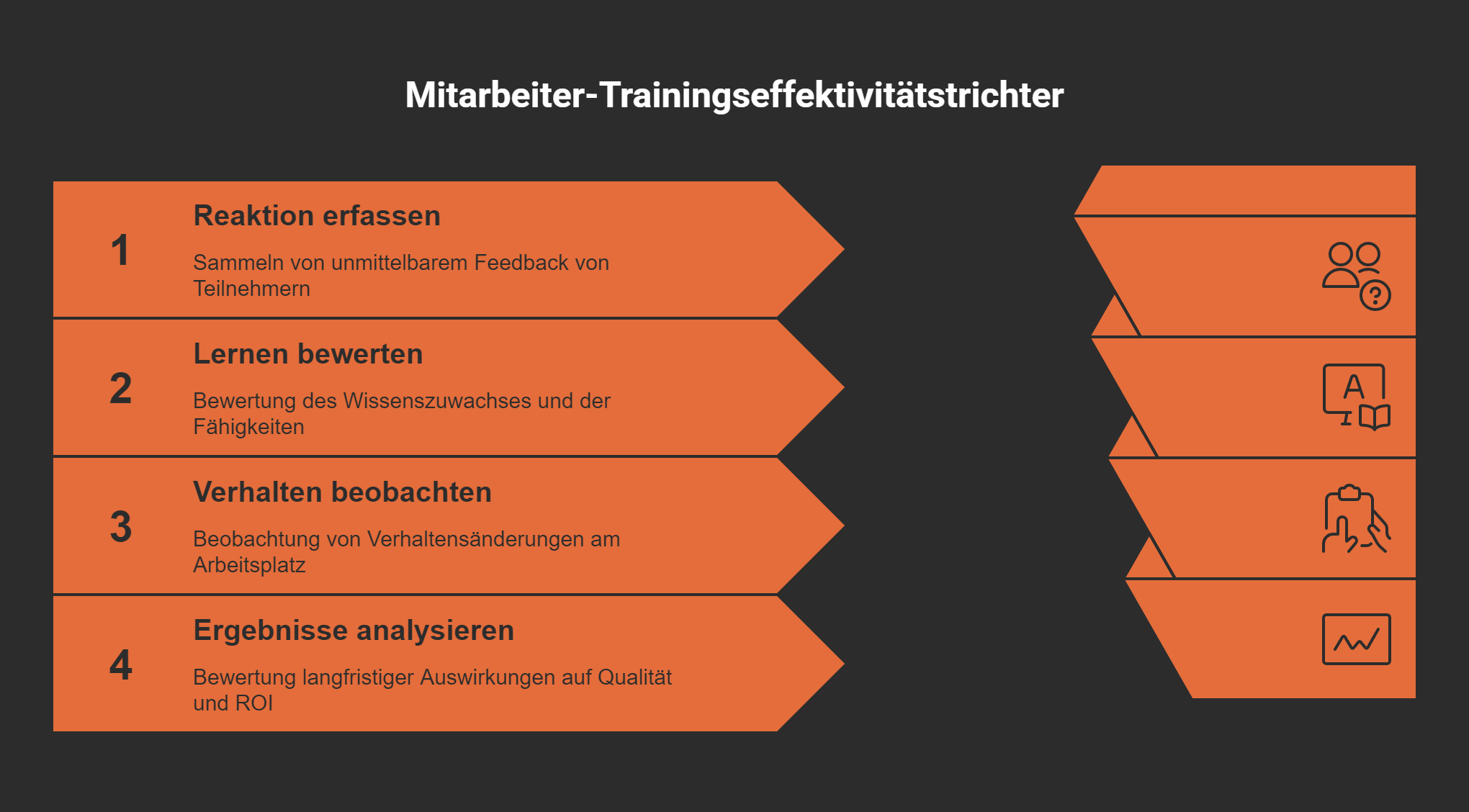 Um den Erfolg der Schulungsmaßnahmen zu messen, kannst Du verschiedene Evaluationsmethoden einsetzen. Diese helfen Dir, die Effektivität der Trainings zu bewerten und gezielt zu verbessern: