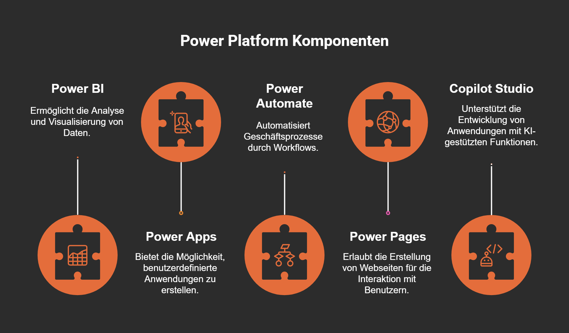 Die Power Platform besteht aus fünf zentralen Komponenten, die jeweils spezifische Funktionen bieten: