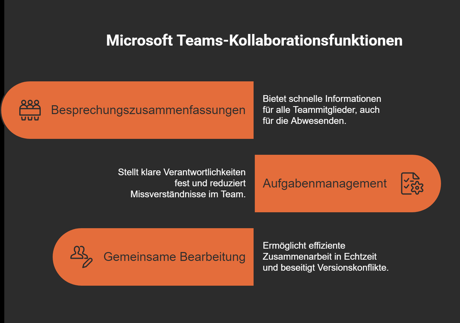 Automatische Meeting-Zusammenfassungen: Verpasst du ein Meeting, erstellt der Copilot eine präzise Zusammenfassung der wichtigsten Punkte. Du kannst die Ergebnisse schnell nachlesen und bist sofort informiert.