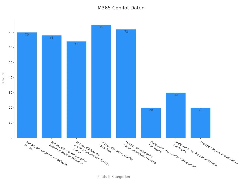 M365 Copilot ist dein intelligenter Assistent für den Arbeitsalltag. Es integriert sich nahtlos in Microsoft 365 und hilft dir, Aufgaben effizienter zu erledigen. Mit seiner KI-Unterstützung optimiert es Prozesse, beschleunigt Workflows und steigert deine Produktivität. Viele Nutzer berichten von spürbaren Vorteilen: 70 % fühlen sich produktiver, 68 % erkennen eine verbesserte Arbeitsqualität, und 29 % finden Informationen schneller. M365 Copilot macht deinen Alltag einfacher, indem es dir Zeit für das Wesentliche verschafft.