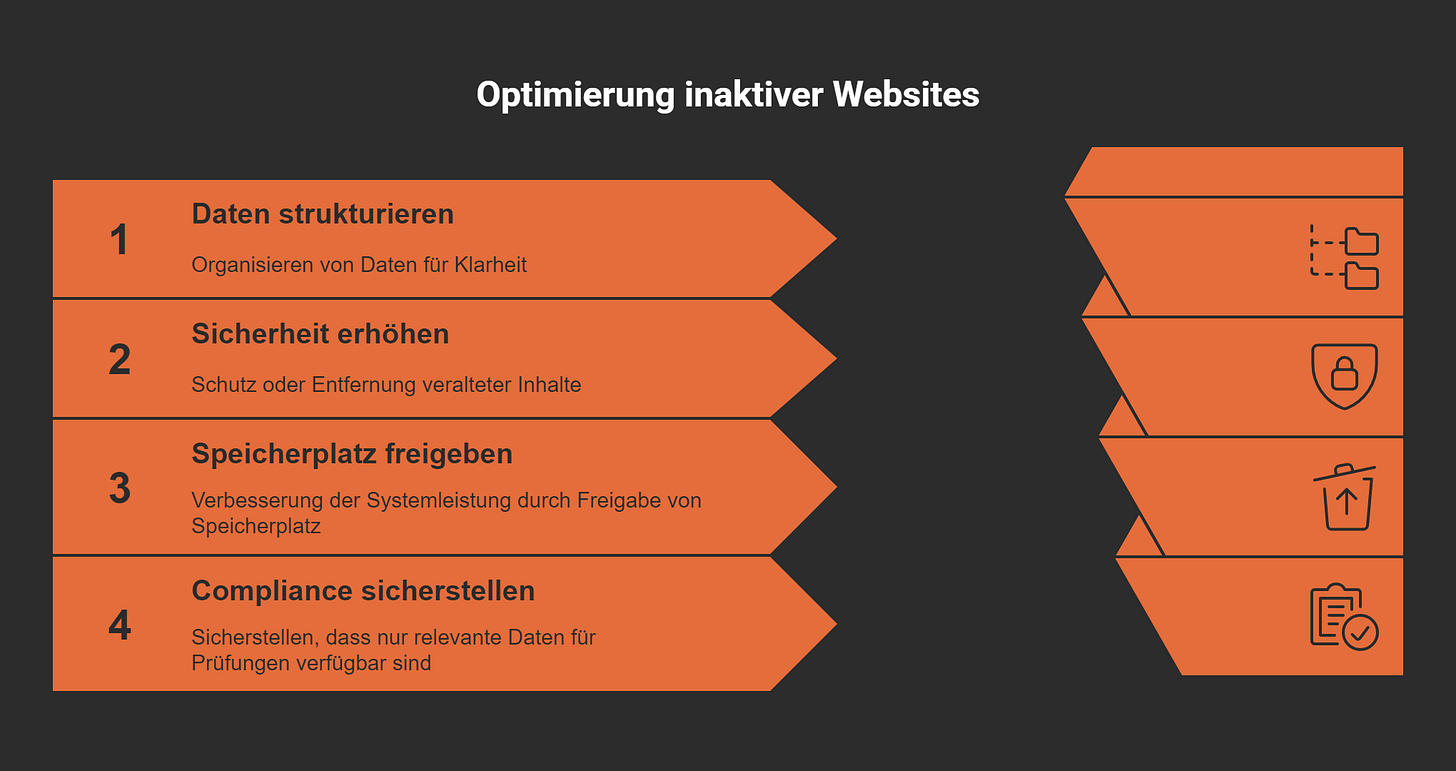 Archivierung: Verschiebe inaktive Websites in ein Archiv, um die aktive Datenlandschaft zu entlasten.