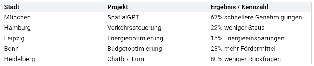 Digitale Zwillinge beschleunigen die Stadtplanung und machen sie effizienter. In München verkürzte sich die Genehmigungszeit für Bauprojekte von sechs Wochen auf vier Tage. Hamburg reduzierte Staus um 22 % durch dynamische Ampelschaltungen. Leipzig sparte 15 % Energie durch digitale Zwillinge für Gebäude. Bonn schöpfte 23 % mehr Fördermittel aus. Digitale Zwillinge ermöglichen fundierte Entscheidungen und eine bessere Verteilung von Ressourcen. Sie helfen, Fehler zu vermeiden und nachhaltige Entwicklung zu fördern.