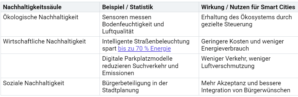 Nachhaltigkeit steht im Mittelpunkt moderner Stadtentwicklung. Digitale Zwillinge unterstützen ökologische, wirtschaftliche und soziale Ziele. Die folgende Tabelle zeigt konkrete Beispiele: