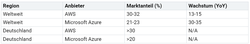 Azure wächst schneller als viele andere Anbieter und liegt beim Marktanteil direkt hinter AWS.