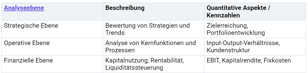 Eine Tabelle zeigt dir, wie Unternehmen Vorteile und Herausforderungen auf verschiedenen Ebenen abwägen: