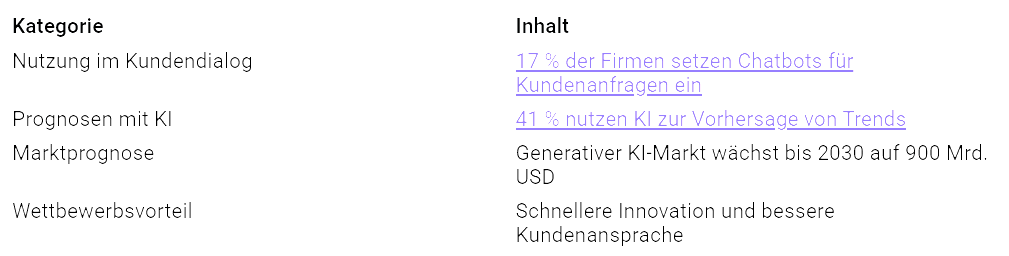 Die Zusammenarbeit von Chatbots und KI verändert die digitale Kommunikation grundlegend. Unternehmen profitieren von Effizienz, Innovation und neuen Geschäftsmöglichkeiten. Die folgende Tabelle zeigt zentrale Trends und Prognosen: