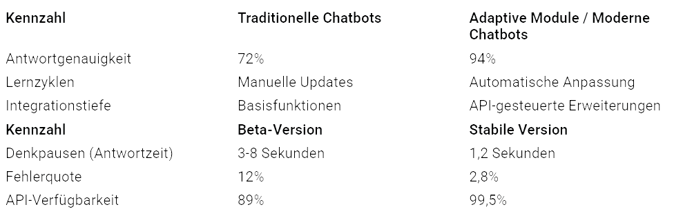 Hinweis: Moderne Chatbots reduzieren Bearbeitungszeiten um bis zu 60% und senken Fehlerquoten auf unter 1%.
